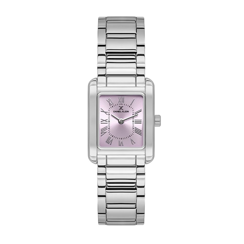 Ženski sat sa rimskim brojevima, pravougaonog oblika sa narukvicom srebrne boje koja je sama po sebi ukras na ruci.