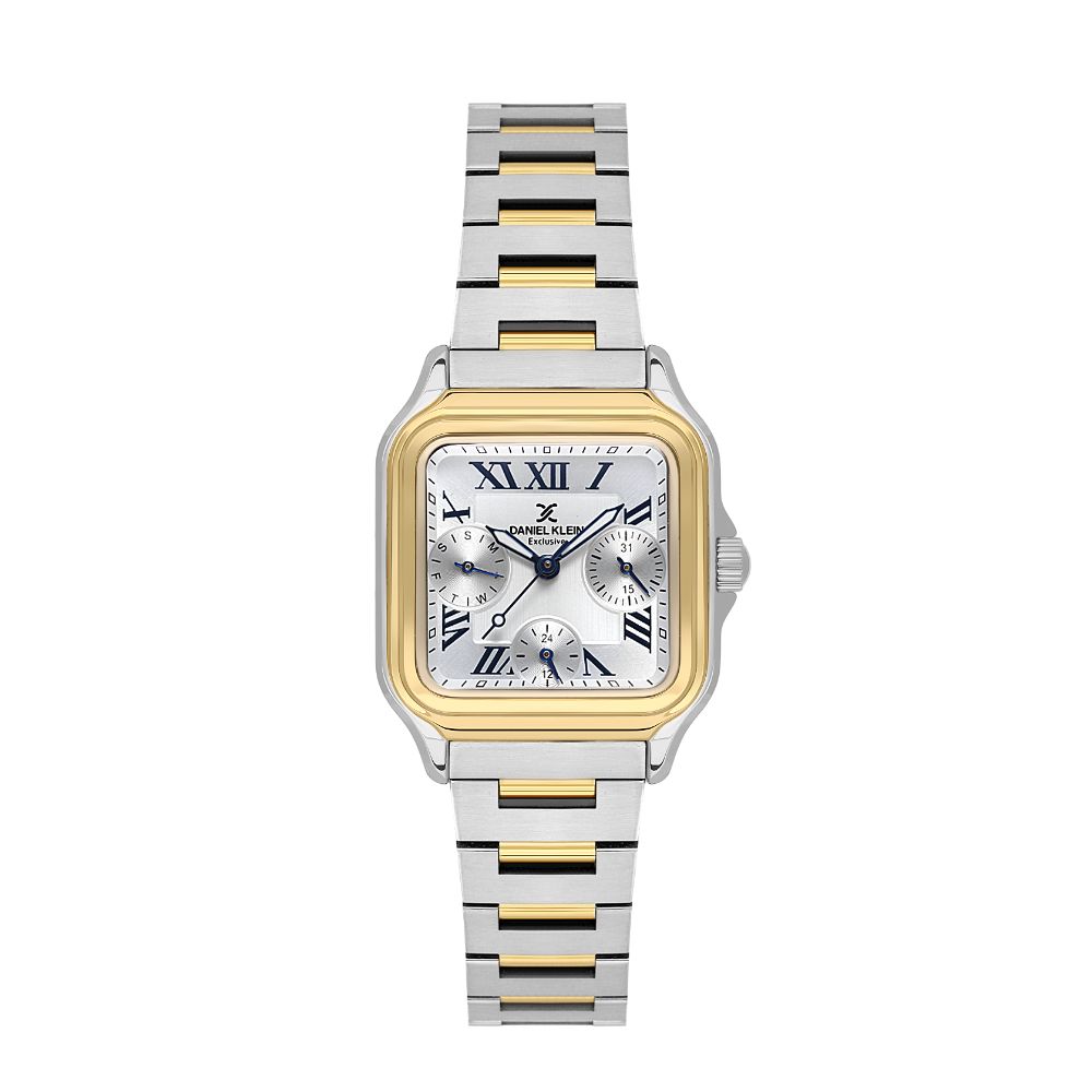 Ženski sat sa prikazom dana, datuma i doba dana. Rimski brojevi i četvrtasti oblik kućišta neodoljivo podsećaju na jedan luksuzni brend i njihov proslavljeni model sata.
