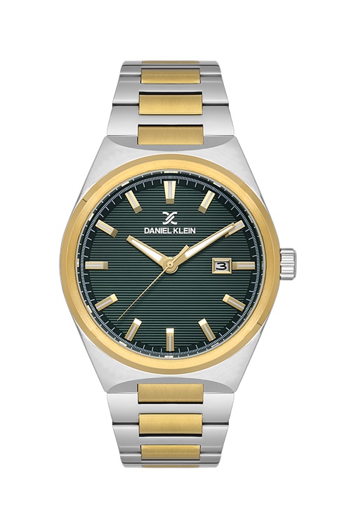 Atraktivan muški sat sa brojčanikom u tamno zelenoj boji, narukvica i kućište u bikolor tonu. Sve je skladno "posloženo".