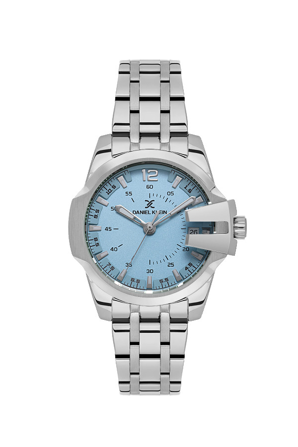Upečatljiv ženski sat sa plavom bojom brojčanika.