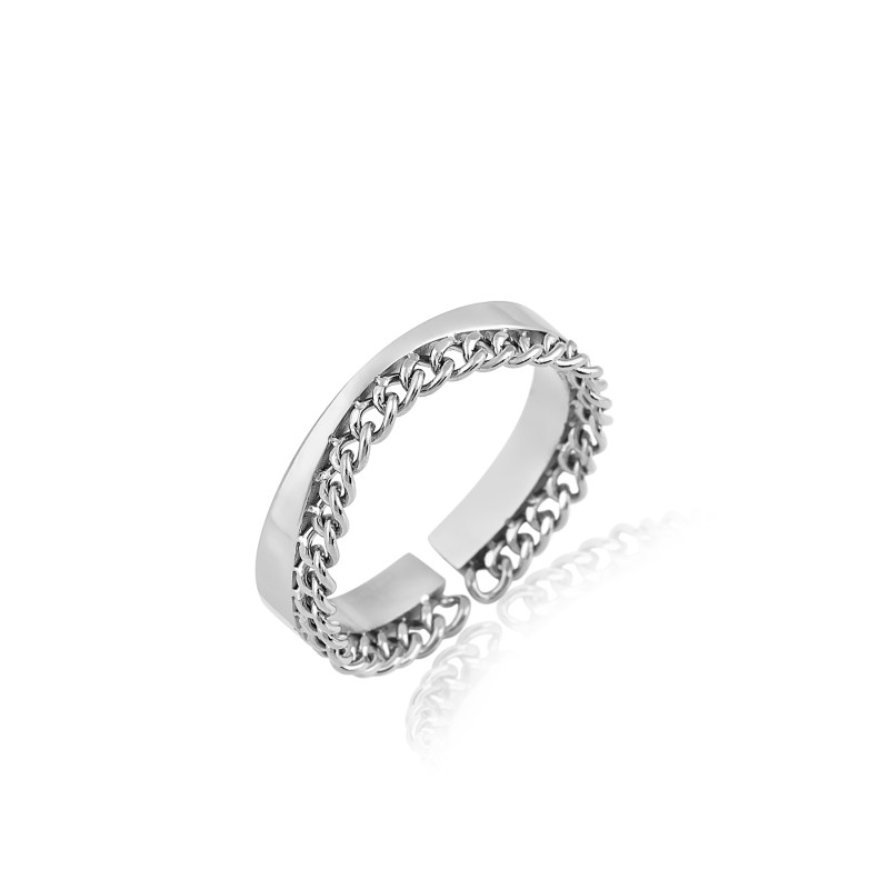 Ženski prsten od hirurškog čelika u srebrnoj boji.