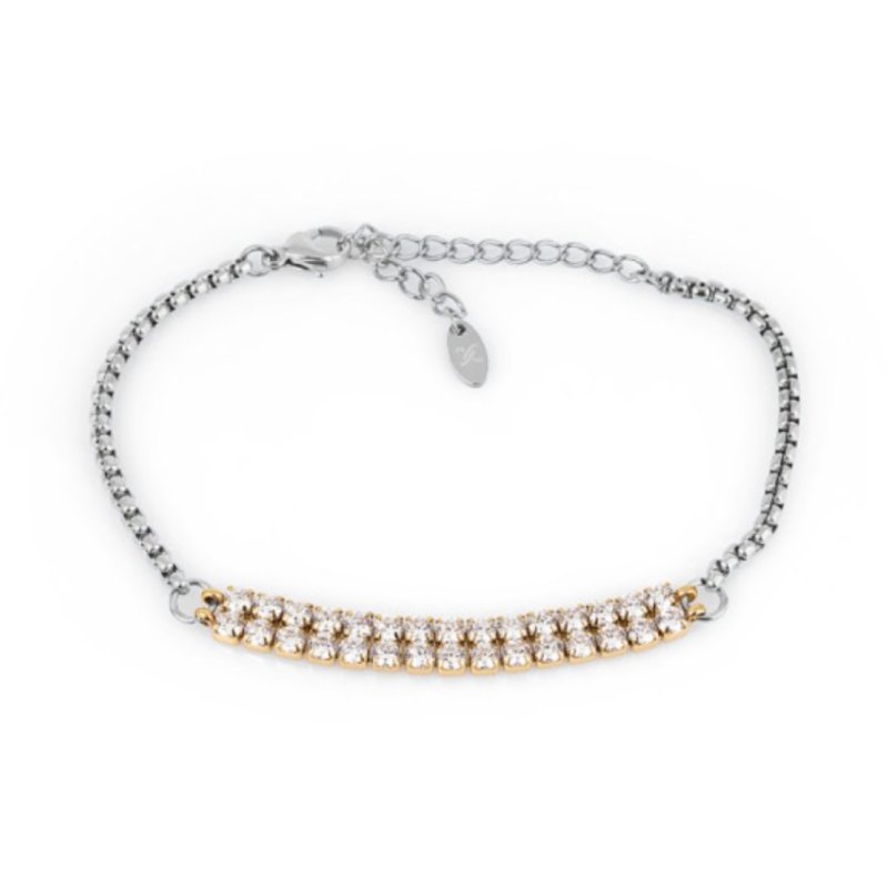 Narukvica filigrantske izrade u efektnoj kombinaciji srebrne i zlatne boje.