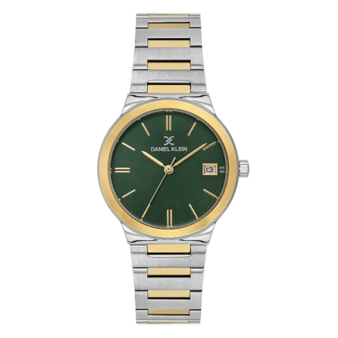 Ženski sat na fascinantnoj bikolor metalnoj narukvici i sa tamno zelenim brojčanikom.