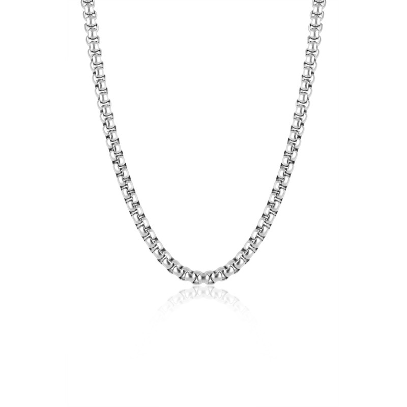 Robustna muška ogrlica od hirurškog čelika u srebrnoj boji.