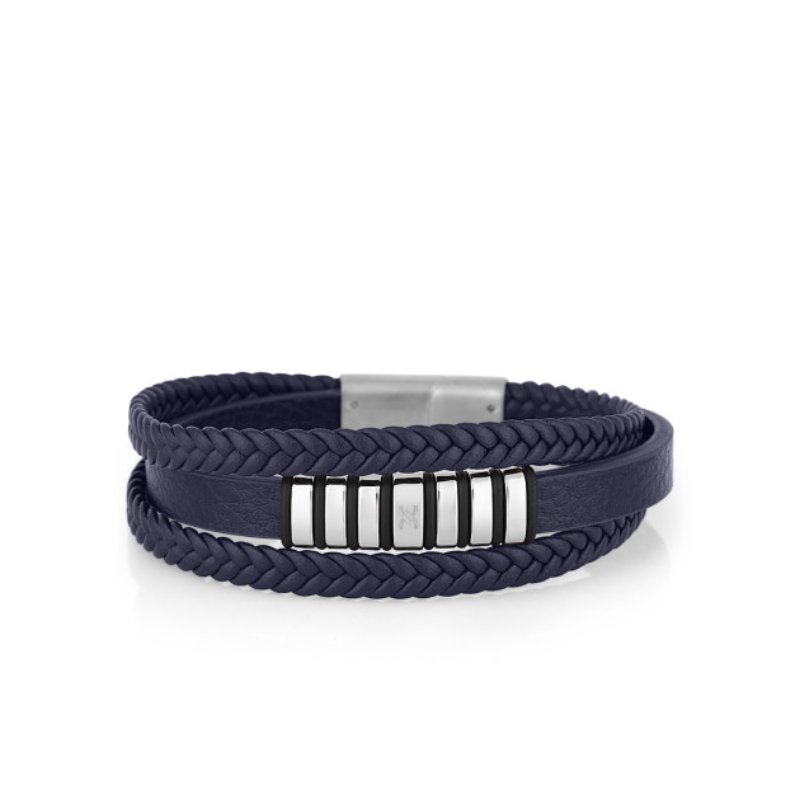 Trostruka kožna muška narukvica teget boje. Impresivna.