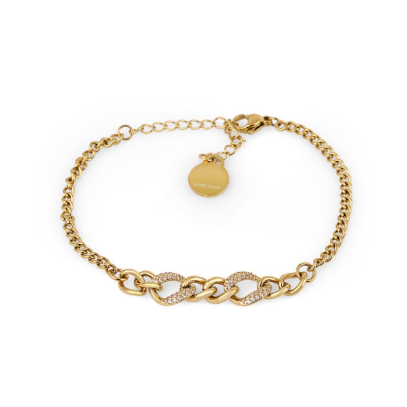 Ženstvena i elegantna narukvica u zlatnoj boji ukrašena diskretno kristalima.