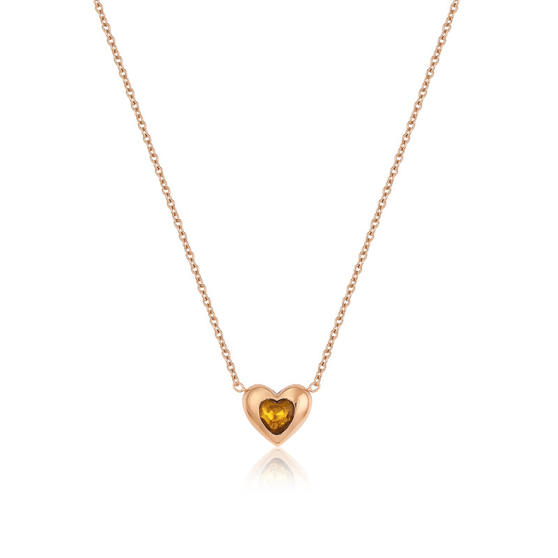 Ogrlica u zlatnoj boji sa priveskom u obliku srca u koje je umetnut neobičan kristal.