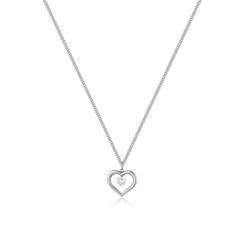 Ogrlica srebrne boje od hirurškog čelika sa srcem i cirkonom po sredini. Mistična.