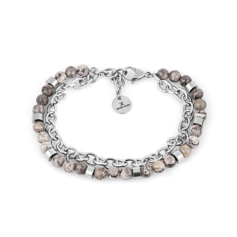 Muška dupla narukvica, efektna kombinacija nerđajućeg čelika i prljavosivih perli.