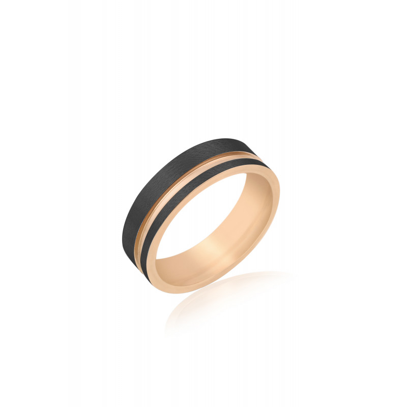 Muški prsten od hirurškog čelika u zlatnoj boji presvučen crnim emajlom.