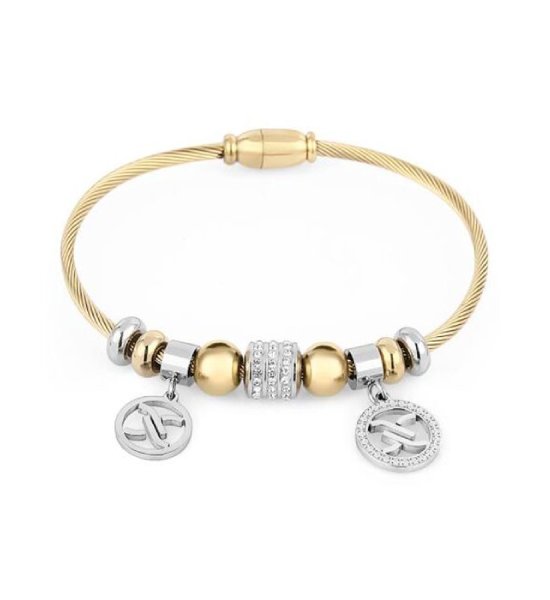 Bikolor narukvica čvrste forme sa privescima koji su vam dobro poznati.