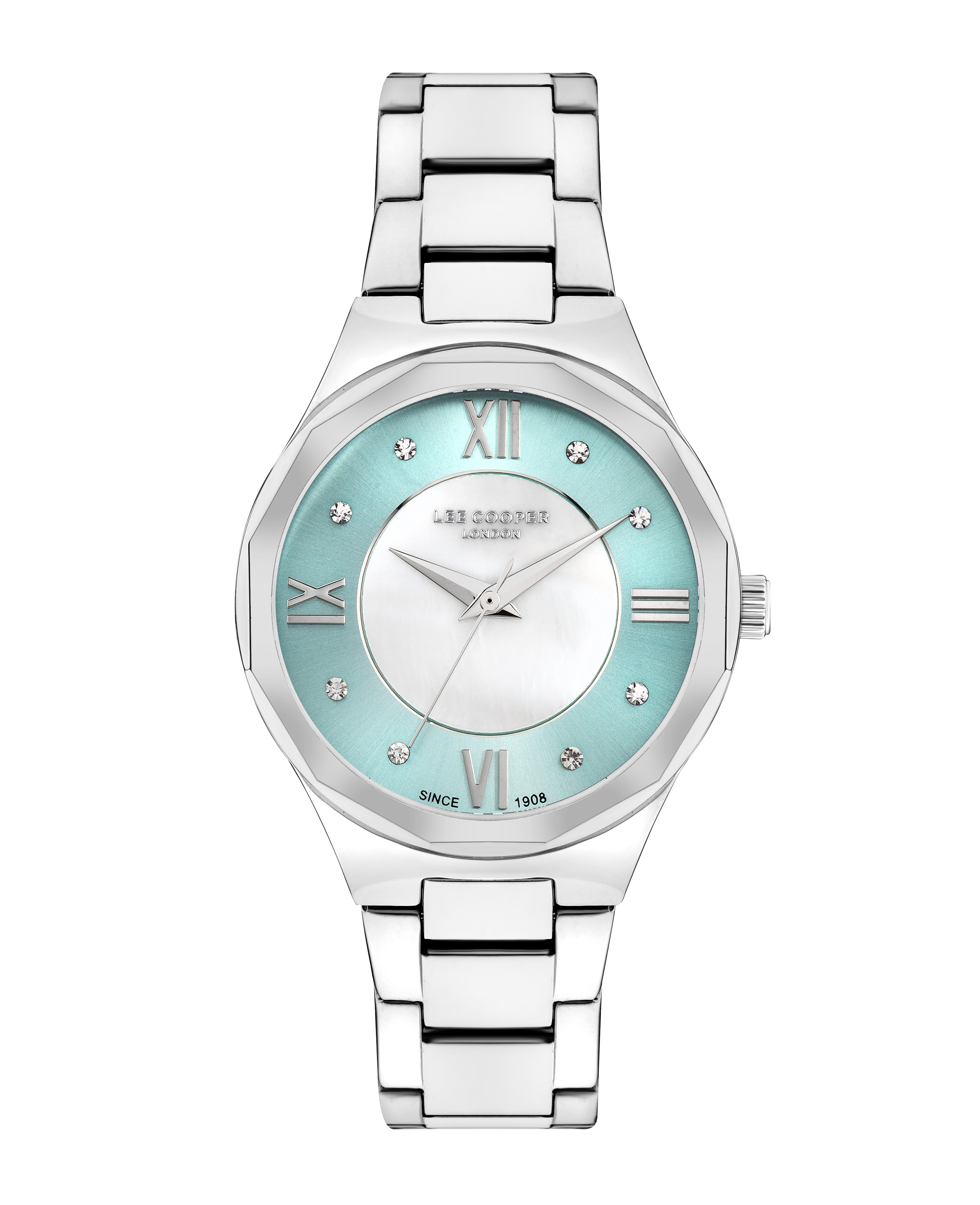 Ženski sat sa diskretnim cirkonima i rimskim brojevima čini ga nesumnjivo damskim.