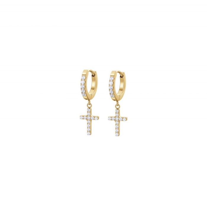 Minđuše krstići i zlatnoj boji ukrašeni cirkonima.