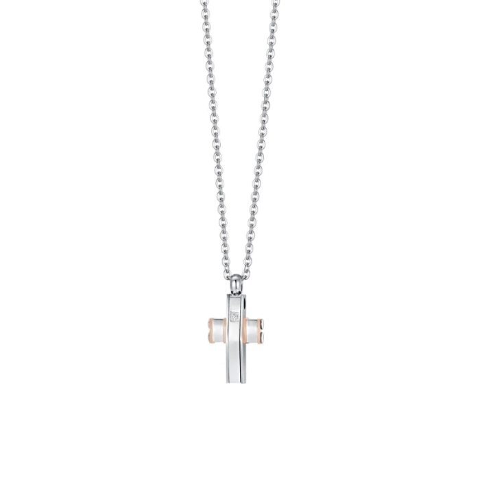 Muška ogrlica srebrne boje sa privesom krstićem koji će vas očarati.
