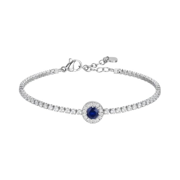 Otmena i rafinirana ženska narukvica srebrne boje sa kristalima.