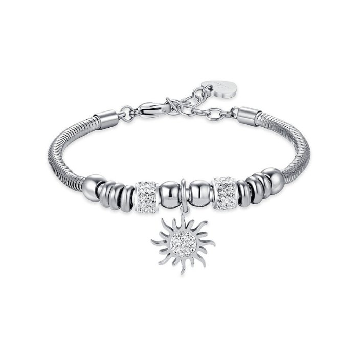 Luca Barra = hirurški čelik bez sadržaja nikla i kadmijuma, 100% anti-alergijski. Narukvica u srebrnoj boji sa priveskom stilizovanog sunca.