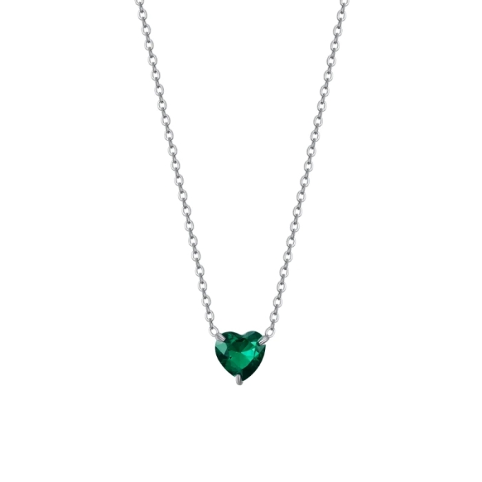 Ogrlica sa priveskom kristalom u obliku srca zelene boje.