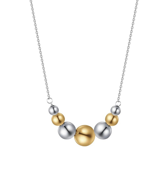 Atraktivna ženska ogrlica u kombinaciji srebrne i zlatne boe.
