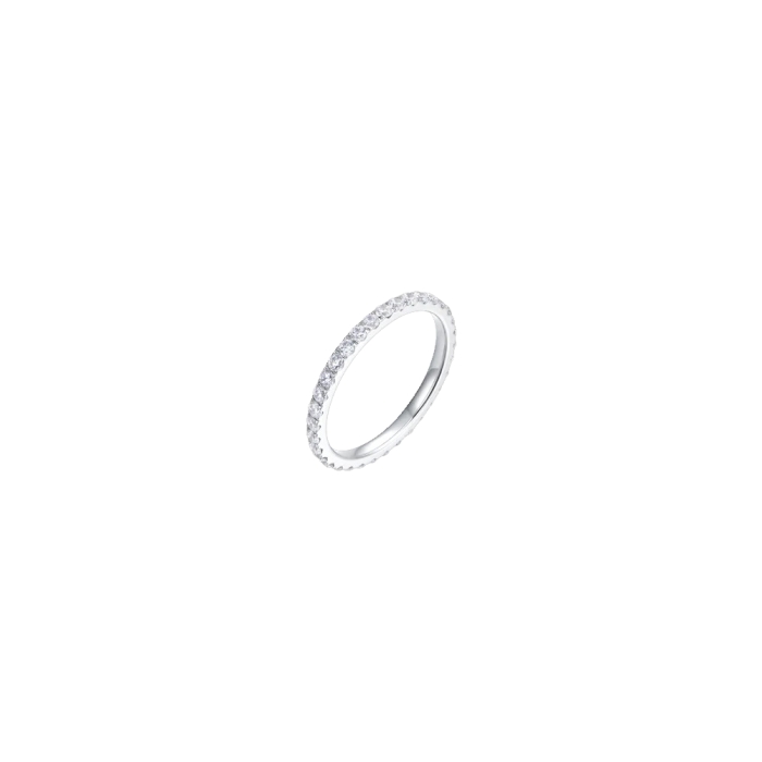 Nežan ženski prsten, prečnika 12 mm, u srebrnoj boji sa cirkonima.