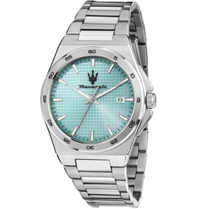 Maserati sa integrisanom narukvicom u srebrnoj boji, prikazom datuma, inače iz Slim porodice, baš tanak.