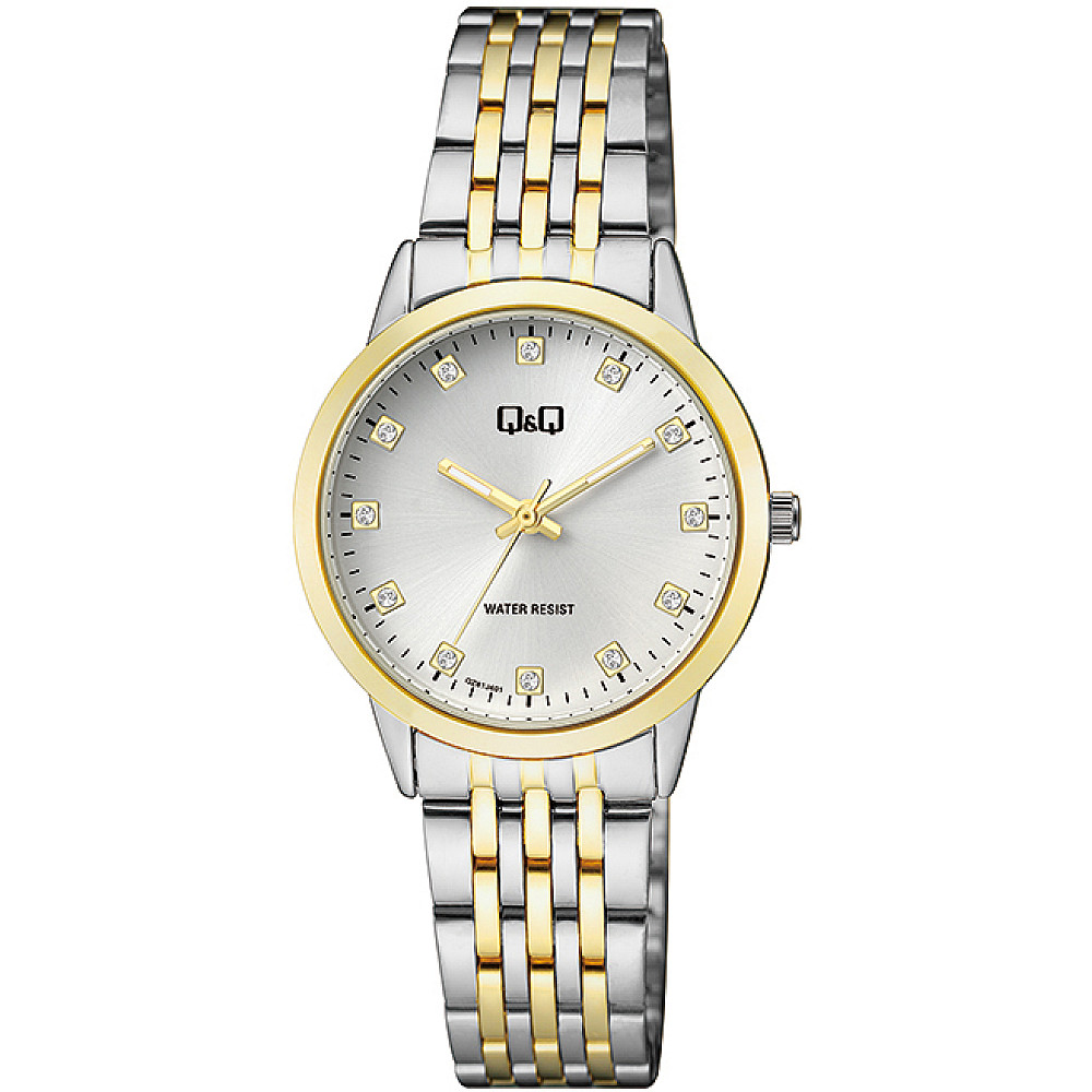 Ženski sat u bikolor varijanti kućišta i narukvice od nerđajućeg čelika, cirkoni na podeocima daju posebnu notu elegancije.