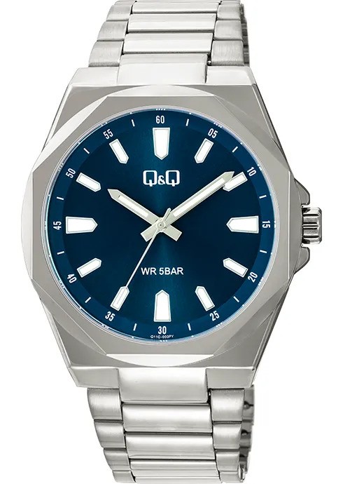 Vrlo zanimljiv muški sat sa plavom bojom brojčanika na narukvici od nerđajućeg čelika srebrne boje.