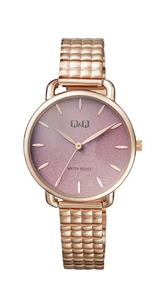 Ženski sat sa blago zaobljenim staklom i diskretno oslikanim brijčanikom u cvetnom dezenu. Narukvica je pravi ukras na ruci.