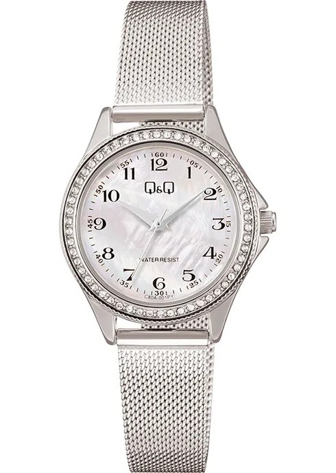 Ženski sat sedefaste boje brojčanika i cirkonima po obodu kućišta plus mesh narukvica u srebrnoj boji čine skroz pozitivan utisak.